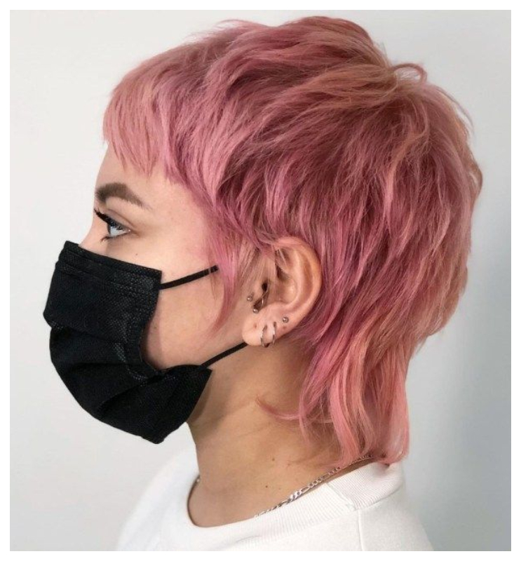 Kurzer, struppiger rosa Haarschnitt
